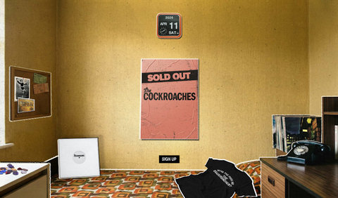 thecockroaches.comの中央のポスターがSOLD OUT表示に。